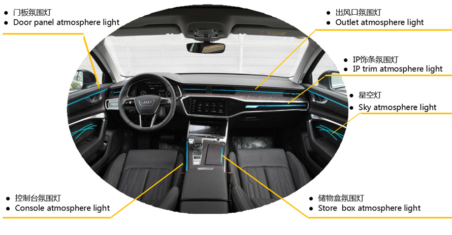 氛围灯在内饰多处存在,前后、左右发光均匀性直接影响用户视觉舒适感。